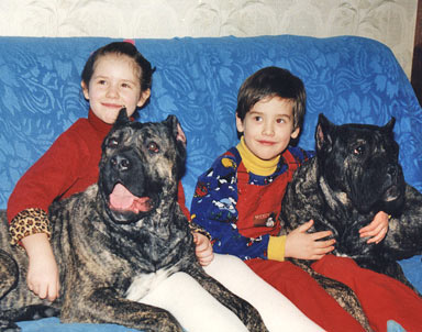 Собаки породы Кане-Корсо вопреки всем мнениям отлично ладят с детьми, слушаются их и защищают.